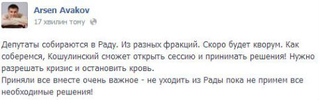 "В ВР сходяться депутати. Вже пару десятків регіоналів. Є несподівані прізвища", - написав Ар’єв.