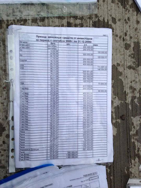 | Натисніть, щоб збільшити. Серед знайдених документів також є відомості про надходження коштів від спонсорів, а також витрати на будівництво об'єктів межигір'я. Фото Оксана Коваленко |