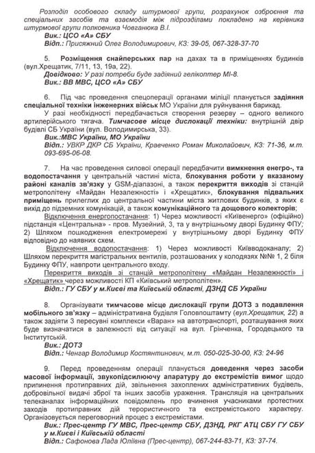 Він також надав прізвища та номери телефонів керівників підрозділів, що брали участь у силовому розгоні акцій протесу.