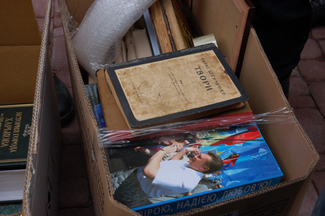 Документів та інших підозрілих предметів в коробках вони не знайшли. Усередині виявилися тарілки, келихи, ложки, мікрохвильовка, чайник, кілька книг, грамоти.
