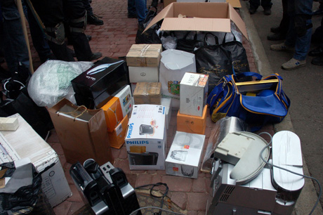 Речі з кабінету губернатора після огляду знову завантажили в мікроавтобус. За словами активістів, машина залишиться на території адміністрації, її охоронятимуть, поки не зроблять повну опис предметів .