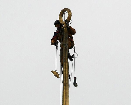 Зі шпиля над скляним куполом Верховної Ради зрізали радянську зірку.