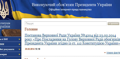 Там розміщено також текст постанови про покладання обов'язків президента на Олександра Турчинова.