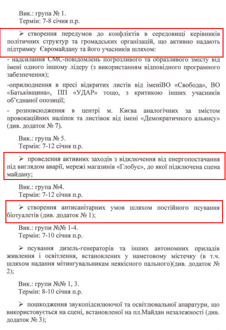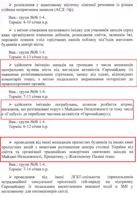 Згідно із документами, агенти мали дискредитувати лідерів опозиції, влаштовувати бійки між різними організаціями, які знаходились на майдані.