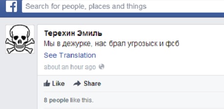 | Скріншот зі сторінки Терьохіна в Facebook |