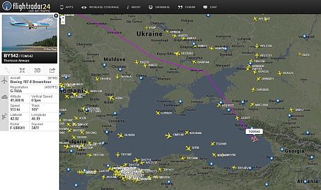Це видно з даних ресурсу Flightradar24.com.