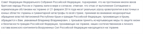 Раніше 1 березня президент Росії вніс звернення до Ради Федерації про використання Збройних сил РФ на території України до нормалізації суспільно-політичної обстановки в країні.