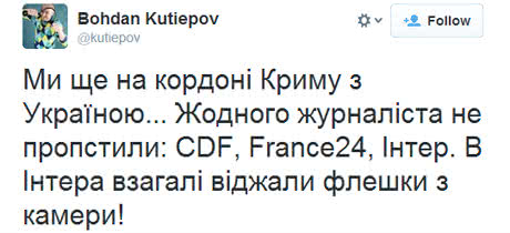 Окрім того журналіст Hromadske TV Богдан Кутєпов та інші представники ЗМІ заявляють, що пресу не пропускають на територію півострова.