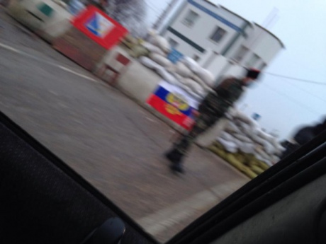 Цивільні особи у камуфляжній формі з георгеевскімі стрічками заблокували в'їзд до Криму.
