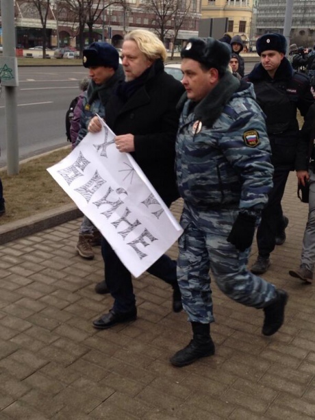 Крім того, біля станції московського метро Бауманська було затримано Олексія Сокирка, що стояв в одиночному пікеті з протестом проти введення військ в Україну.