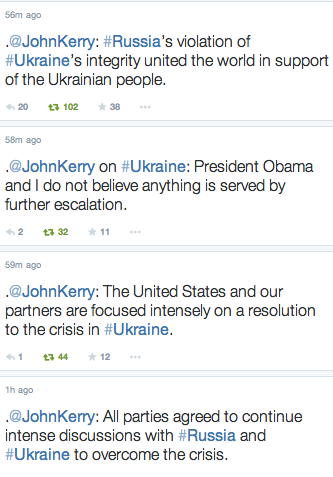 Всі учасники переговорів зійшлися в думках, що діалог є найкращим виходом із української кризи, повідомив Керрі. У зустрічі в Парижі, крім Керрі та Лаврова, брали участь міністри закордонних справ ФРН, Франції і Великобританії Франк-Вальтер Штайнмайер, Лоран Фабіус і Вільям Хейг, передає dpa.
