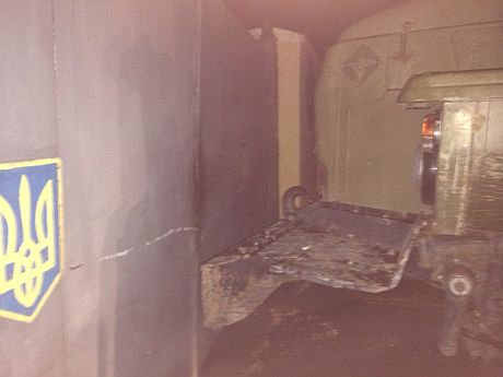 | Російський Урал таранить ворота військової частини А2355. Фото: Олександр Черненко |