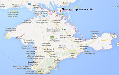 Чонгар опинився між двох вогнів - з боку Криму в землю врилась російські війська, а з боку Генічеська - українські. Стовбури дев'яти російських БТРів спрямовані прямо в центр села.