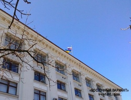 У Луганську з будівлі обладміністрації зняли прапори РФ і СРСР і підняли на флагшток український прапор.