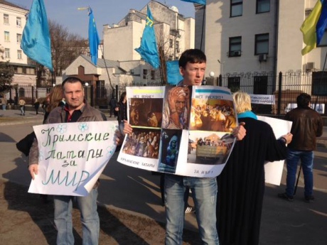 Кримські татари в Києві закликали усіх кримчан підтримати акцію та бойкотувати незаконний референдум.