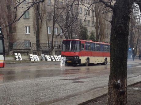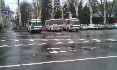 За їхніми даними, на одному з автобусів - табличка "Торез", інші - закриті газетами.