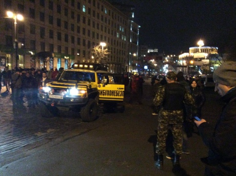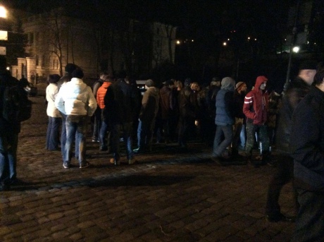 Кілька десятків людей зібрались на вулиці Грушевського в Києві і спалили кілька шин у знак протесту проти "пасивності влади".