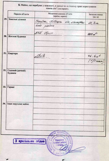 На дружину Галину Бондаренко записані 27,8 га землі в Макарівському районі Київської області та 800 кв. м. землі у Криму.