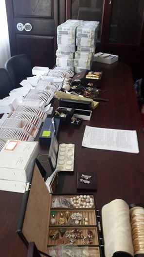 "У ході проведених обшуків вилучено: 4,8 мільйони доларів готівкою; золоті злитки загальною вагою 42 кг; наручні дорогі годинники відомих світових брендів; велика кількість виробів з дорогоцінних металів; коробочки з каменями, схожими на діаманти; безліч документів на нерухомість, частки у компаніях, земельні ділянки; документи на реєстрацію зарубіжних компаній у різних офшорних юрисдикціях; банківські картки, документація на рахунки у низці банків", - зазначив Аваков.