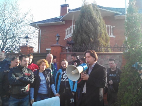 Як повідомляє 5 канал, біля маєтку у с.Нові Петрівці автомайданівців зустріла дружина прем’єра і запросила їх на подвір’я.