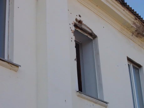 | Сліди від куль на стінах будівель військової бази морської піхоти в Феодосії |