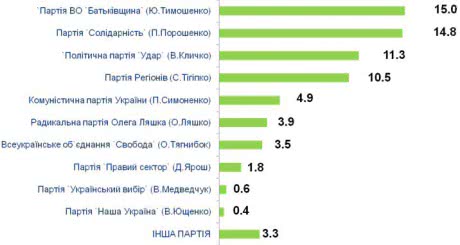 Щодо політичних уподобань серед партій, то електоральні орієнтації українців розділилися наступним чином: