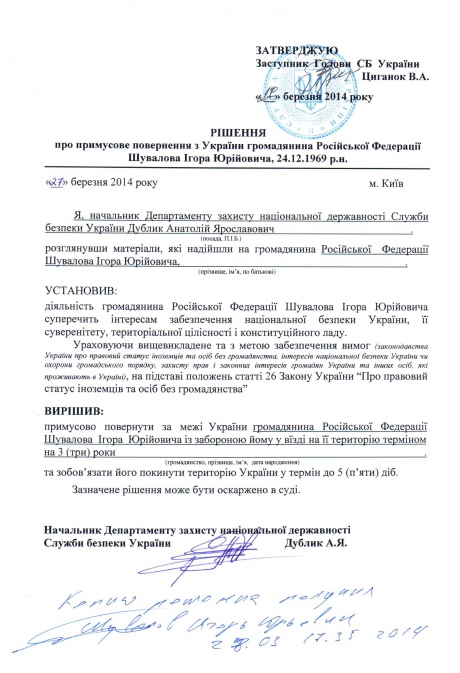 СБУ дала Шувалову п’ять днів, щоб залишити територію України.