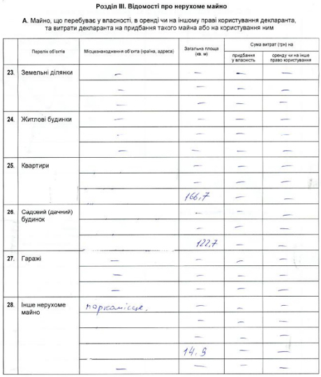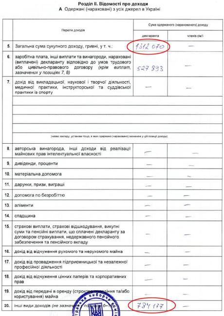 Такі дані містяться у його декларації, поданій до ЦВК.