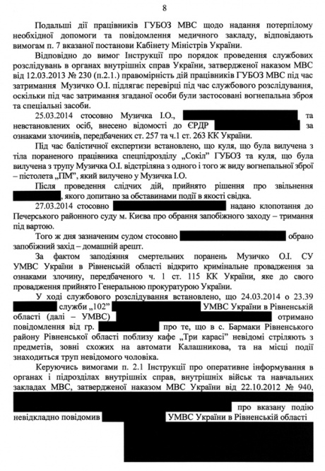 Висновок внутрішнього розслідування МВС щодо вбивства Сашка Білого (Музичка)