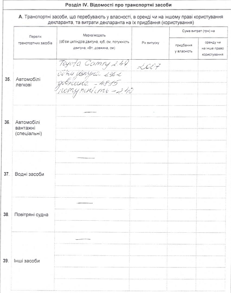 Махніцький також задекларував автомобіль Toyota Camry 249, 2007 року випуску.