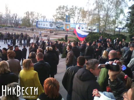 Близько 300 осіб, прихильників проросійських сепаратистських мітингів, підійшли до Миколаївської облдержадміністрації з метою проникнути всередину будівлі.