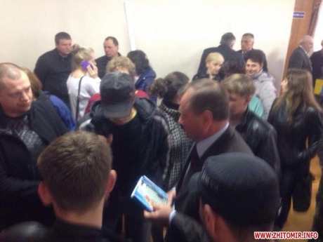 УНІАН зазначає, що при цьому активісти скадували "Ганьба!". За їх словами, цю акцію вони провели на знак протесту проти присутності колишніх керівників в органах чинної влади і "за зміну влади в області".