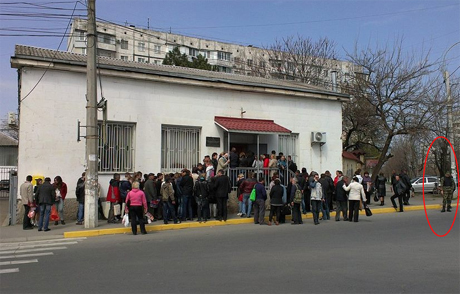 | Дві черги кримчан, за якими слідкують російські військові |
