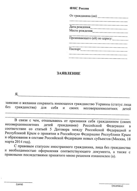 Кожній особі, яка написала відмову від російського громадянства, видається довідка без печаті та підписів.
