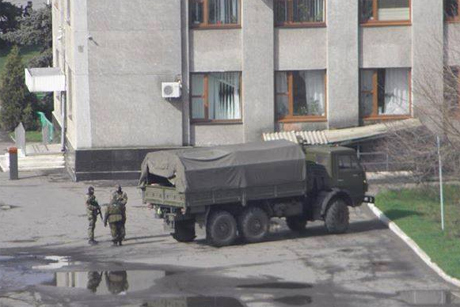 У той же час, за інформацією Лівого Берега, люди в камуфляжі приїхали на військових вантажівках без номерів.