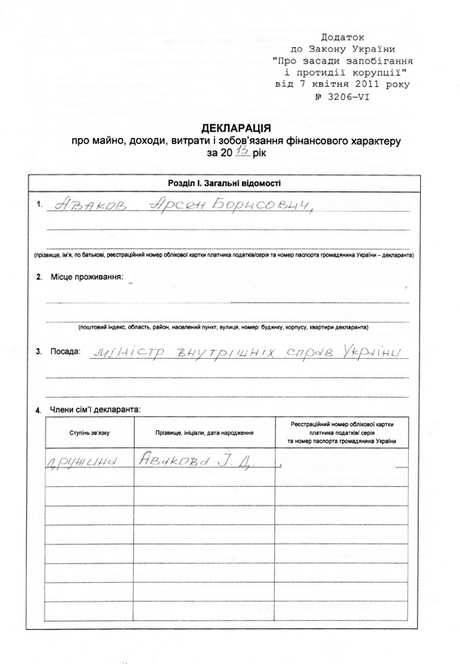Аваков заробив у 2013 році 282 тисяч і не має жодного авто