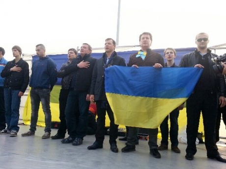 Активісти скандують: "Одна, єдина, соборна Україна", "Разом - сила"