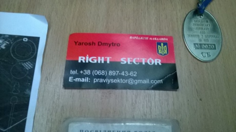 Разом з тим Пономарьов заявив, що на місці події серед речей убитого бойовика було знайдено жетон "Правого сектора" з номером 20, повідомляє ИТАР-ТАСС.