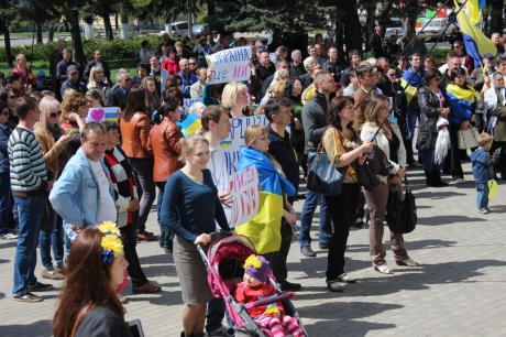 У Харцизьку (Донецька обл.) на площі перед Палацом культури, недалеко від захопленої сепаратистами будівлі міськради, пройшов мітинг за єдність України.