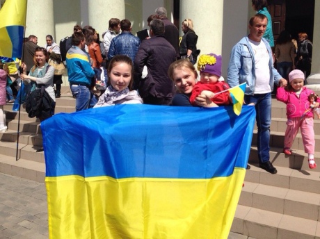 Участь у мітингу взяли близько 400 осіб, за їх словами, вони прийшли на площу з прапорами України висловити свою позицію і підтримку єдності країни, пише УНІАН.