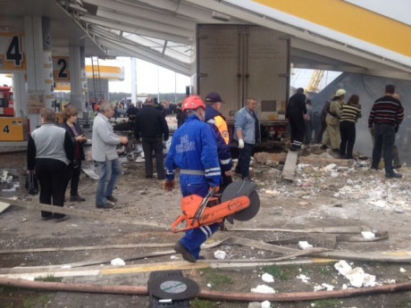"За попередніми даними рятувальники розглядають 2 версії причин вибуху - помилка при проектуванні автозаправного комплексу та порушення правил пожежної безпеки. Рятувальна операція триває, буду оперативно повідомляти інформацію", - сказав київський губернатор Володимир Шандра, перебуваючи на місці вибуху.