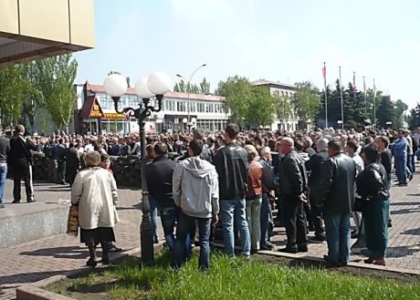 Требуют референдум. То ли за присоединение к России, то ли за автономию Донецкой области. Единства мнений нет. #Енакиево