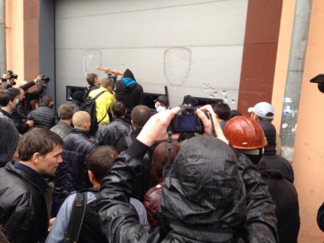 Станом на 16:00 проросійські активісти почали трощити двері та вікна відділку МВС. Роззлючені активісти разом з тим скандували "Одесса русский город! Фашиз не пройдет! Убийцы! Свободу героям!"