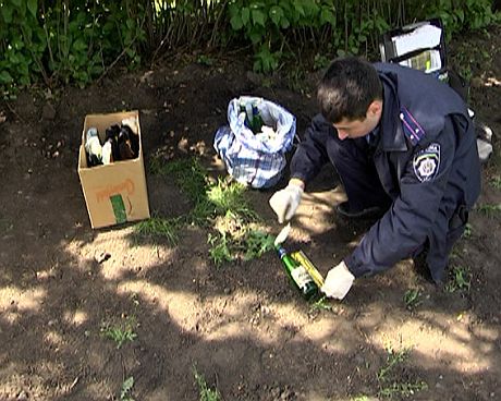 Міліціонери вилучили більше 20 підозрілих пляшок та інші речові докази.