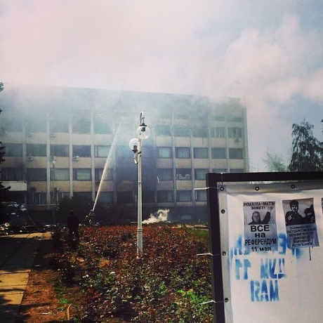 Разом з тим журналісти повідомляють, що у Маріуполі знову горіла міськрада.