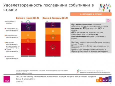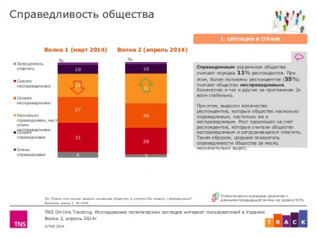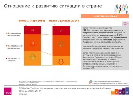 Більше половини жителів України вважають, що ситуація в країні розвивається в неправильному напрямку, згідно з інтернет-опитуванням TNS-Україна.