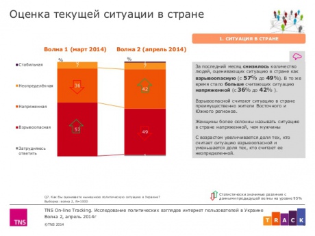 Дослідження проводилося в інтернеті серед користувачів 18-55 років у два етапи: 1-7 березня й 14-18 квітня цього року. Вибіркова сукупність - 1000 респондентів. Вибірка репрезентативна по регіонах і статевовіковій структурі для міст 50 тис.+