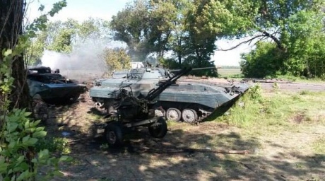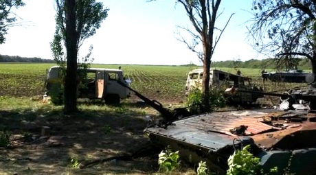 На місці бойових дій під Волновахою зараз залишились три знищені БМП, вантажний армійський ЗІЛ, дві розстріляні швидкі та мікроавтобус зі слідами від куль, повідомляється у ТСН.