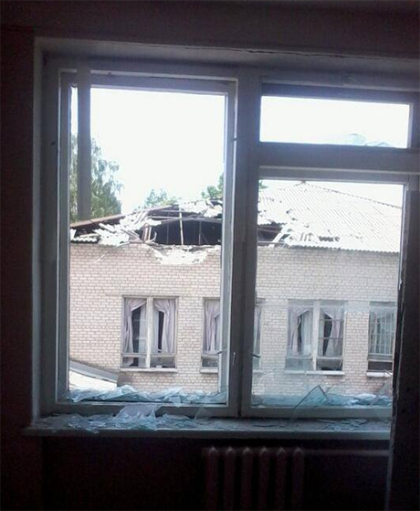 За його словами, терористи вже поцілили в будівлю школи. Ця інформація підтверджується повідомленнями у соціальних мережах, де навіть опублікували фото школи №13 з пробитим дахом в районі спортзалу. За інформацією з соціальних мереж, діти сховалися у підвалі.