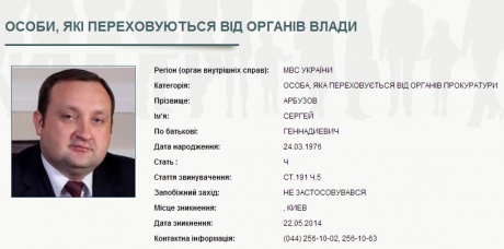 Раніше Генпрокуратура направила до МВС постанову про розшук Арбузова.